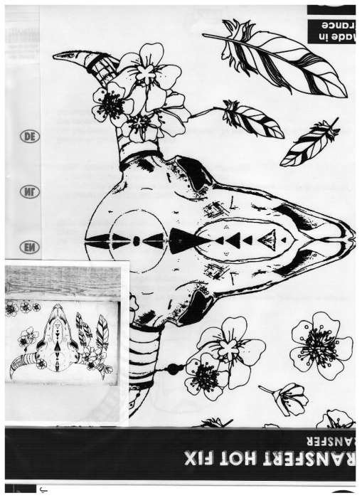 Samolepka na textil, zažehlovací, 19x28 cm, motiv TETE DE BUFFLE, LEBKA, černá