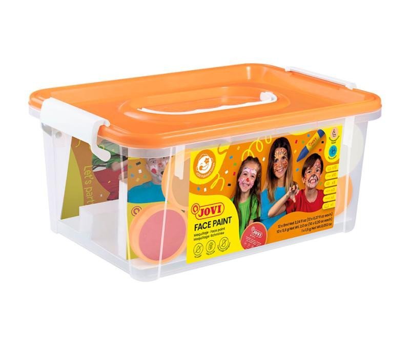 JOVI školní sada barvy na obličej obsahuje: 12 x 8 ml barvy na obličej + /art.176/ malovátka na obličej 10 x 5,6 g + 3 ks štětců + 8 ks houbičky na obličej + 1 ks konturovací pero + návody. Barvy slouží k líčení pleti. Snadno odstraníte pomocí vody, mýdla nebo mlékem na odlíčení. Dermatologicky...