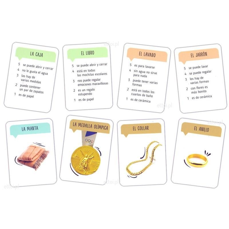 ?Qué es? - gra językowa ? Qué es? to edukacyjna gra karciana typu quiz, która doskonali umiejętność swobodnego opisywania codziennych przedmiotów pod kątem ich wyglądu, zastosowania i cech wykonania. Ta gra zawiera instrukcje zarówno w języku hiszpańskim, jak i polskim, oraz dodatkową kostkę do...