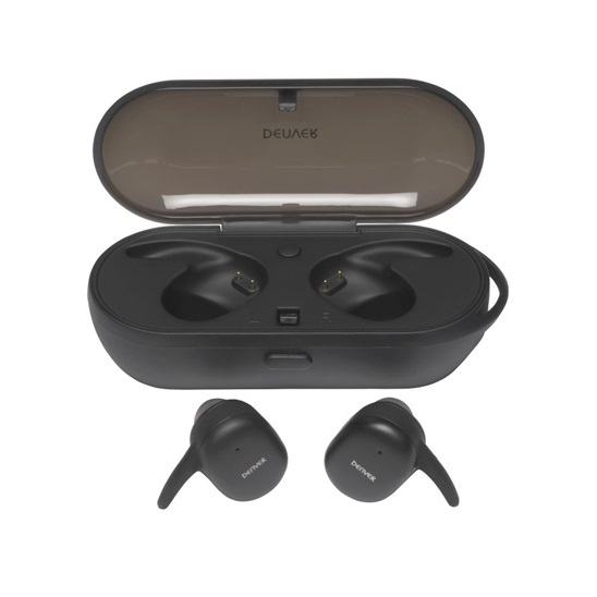 Bezdrátová Bluetooth sluchátka, Bluetooth v 5.0, podporuje: HFP, HSP, A2DP a AVRCP, dosah až 10 m, každé sluchátko má 50mAh baterii, nabíjecí pouzdro 450 mAh, frekvenční charakteristika 20 Hz - 20 kHz, nízká hmotnost, handsfree hovory, nabíjení 2 h, přehrávání 4-5 hodin, pohotovostní doba 150 hodin