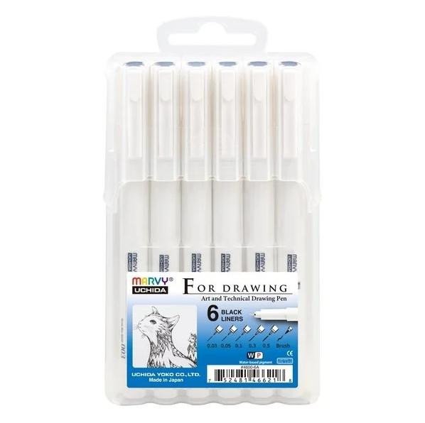 Technický popisovač 4600-6A 6KS ČERNÝ B/0,5/0,3/0,1/0,05/0,03
