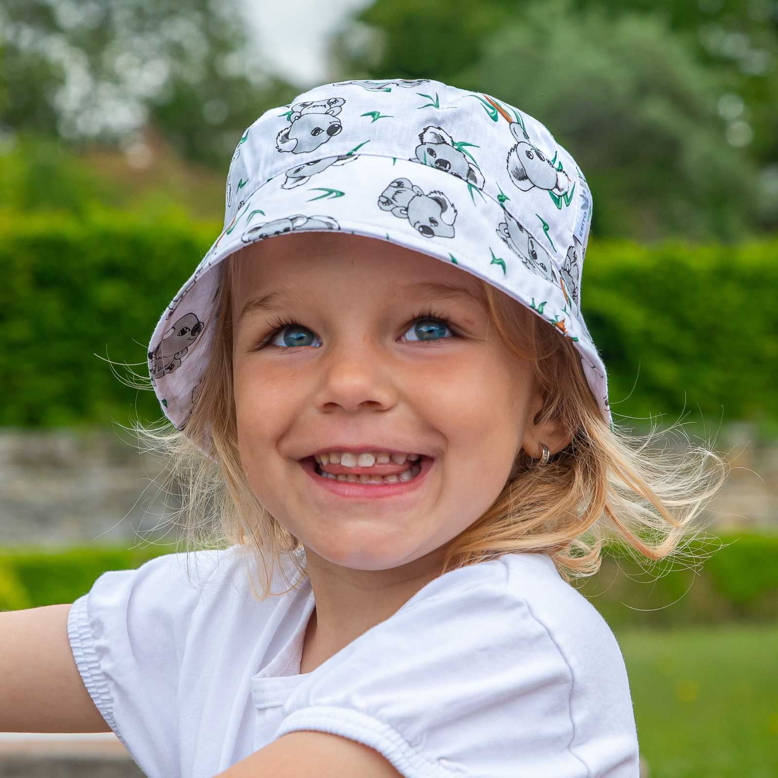 Lehký, vzdušný letní dětský klobouk Koala z příjemné velmi jemné bavlny. Skvělý střih dětského letního klobouku, který padne jako ulitý. U velikosti XS a S jsou bavlněné jemné a měkké šňůrky na zavázání, které dle potřeb lze případně odstřihnout.