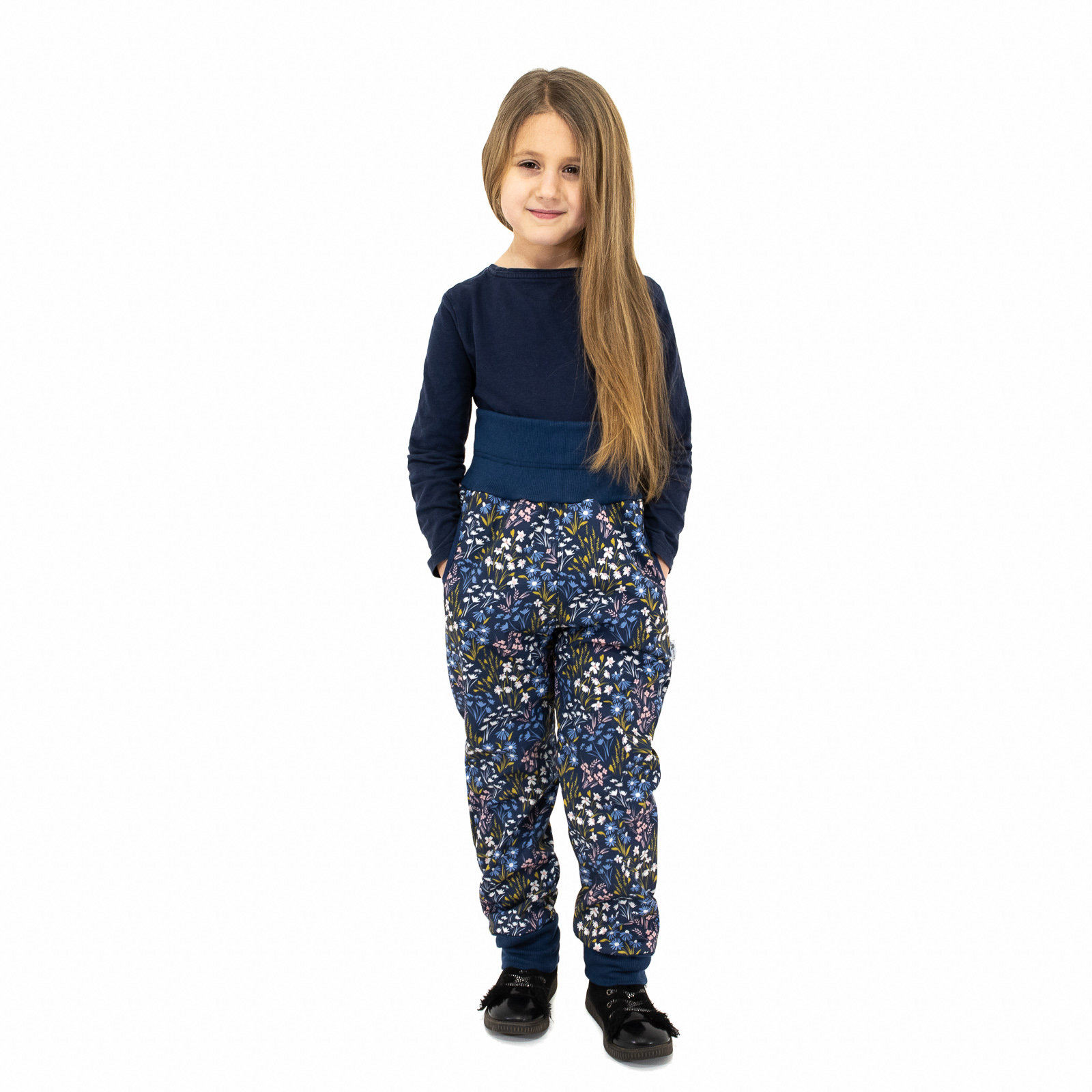 Rostoucí softshellové kalhoty Meadows flowers; Barva: modrá; Velikost: 122