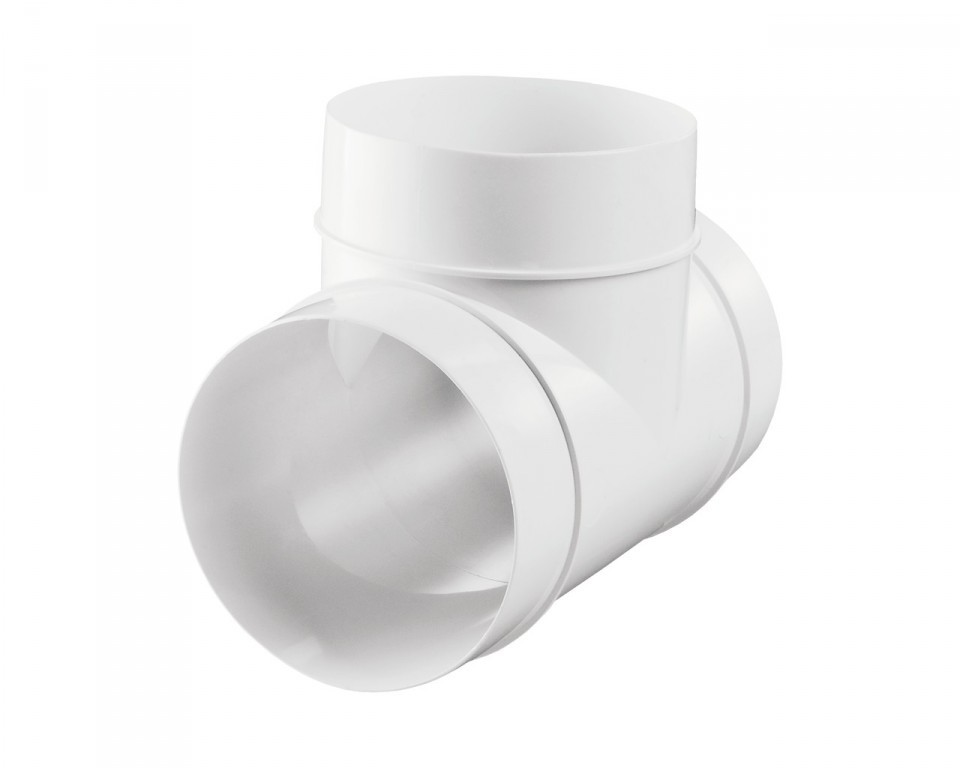Odbočka T-kus. Roztrojka je vyrobena z bílého plastu, který není odolný dlouhodobémuzáření slunečních paprsků (žloutne). Roztrojka se využije při potřebě spojit více potrubních rozvodů do jednoho. Důležitá pro nastavení optimálního odvětrávání pří více vzduchovodech.Tato plastová roztrojka se jednoduše nasadí na potrubí, žádné další komponenty nejsou třeba.Roztrojka je kompatibilní s veškerým vzduchotechnickým potrubím, které nabízíme.