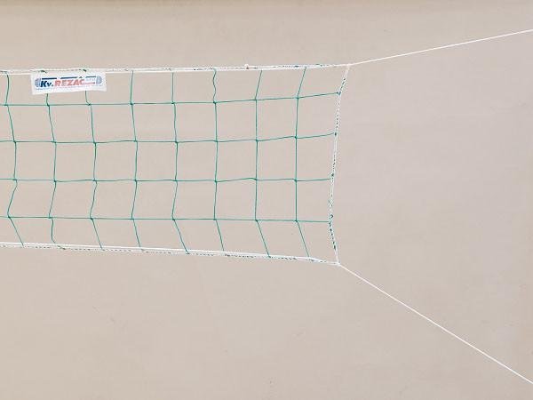 Síť VOLLEYBALL - pro školy: Tréninková síť pro školy. Uzlová síťovina zelená z polypropylenu 2 mm, oko 10 cm. Bez pásky, jen obšití. K horními a spodnímu okraji je přišita PA bílá šňůra o délce 12,5m, která tvoří úvazky sloužící k připevnění ke sloupkům.9,5 X 0,5m číst celé
