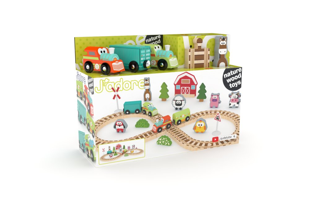 J`adore je řada vzdělávacích hraček pro nejmenší, vyrobených z ekologicky udržitelného dřeva, bez chemikálií. Produkt stimuluje dětskou fantazii. Set je vhodný pro děti od 3 let. Set obsahuje koleje, vláček, figurky zvířátka, domeček a stromy. číst celé
