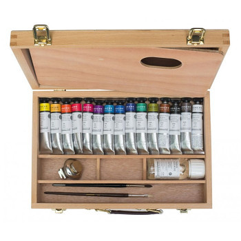Sada kvašových barev Sennelier 15ks s příslušenstvím, dřevěná kazeta