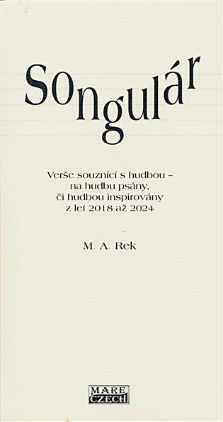 Ve své devátá sbírce poezie Songulár autor M. A. Rek nabízí "verše souznící s hudbou". Tedy verše přímo na hudbu psány, nebo které byly hudbou inspirovány. Vlastní texty i přepisy písní vznikaly v letech 2018 až 2024. Knihu tematicky doplňují fotografie a koláže s podpisem autora!