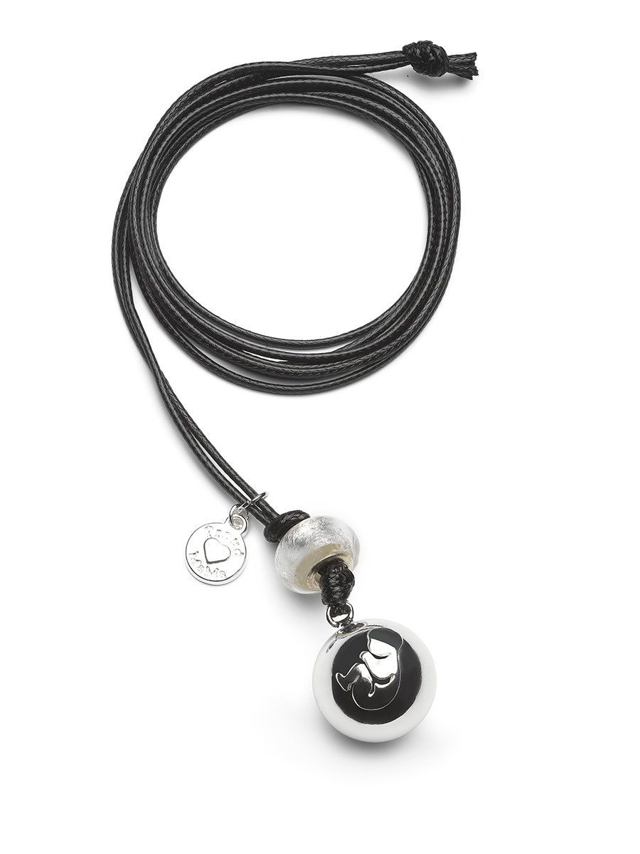 Mexická bola - kulička s miminkem, barva černá / stříbrná, materiál kov / šňůrka, délka 120 cm, váha 15 g.