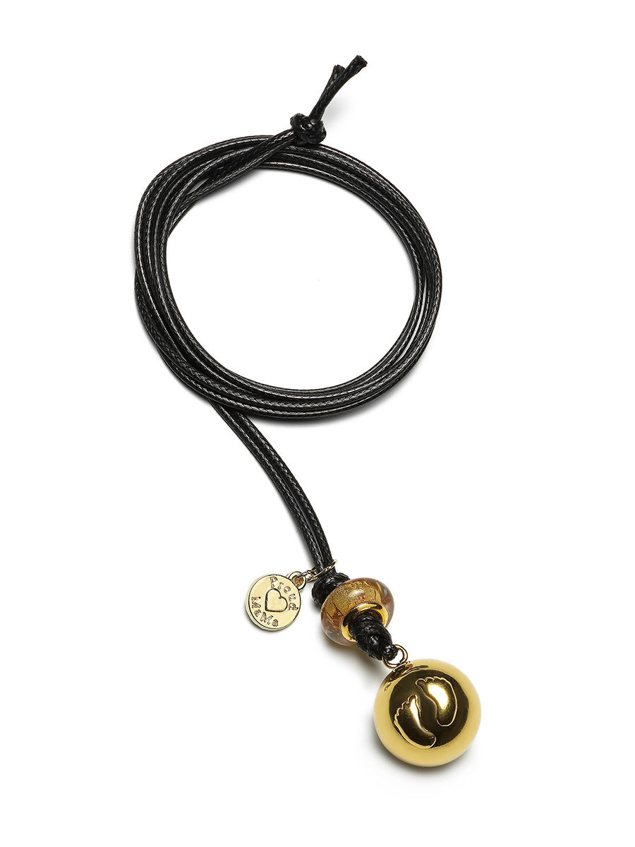 Proud MaMa Přívěšek mexická bola Basic Gold kulička s dětskou nožičkou černý 402