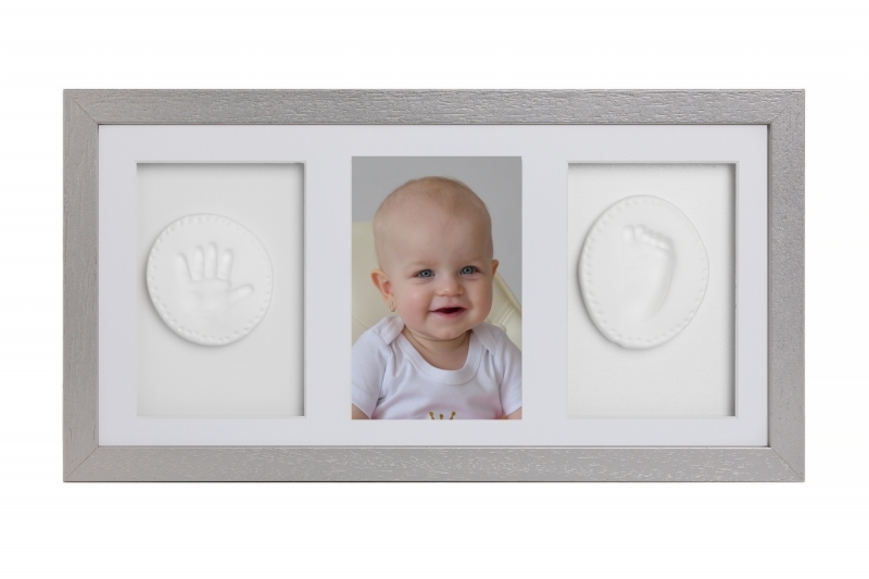 Sada na otisky nožiček či ručiček, trojrámek - dárková sada pro miminko - stříbrná