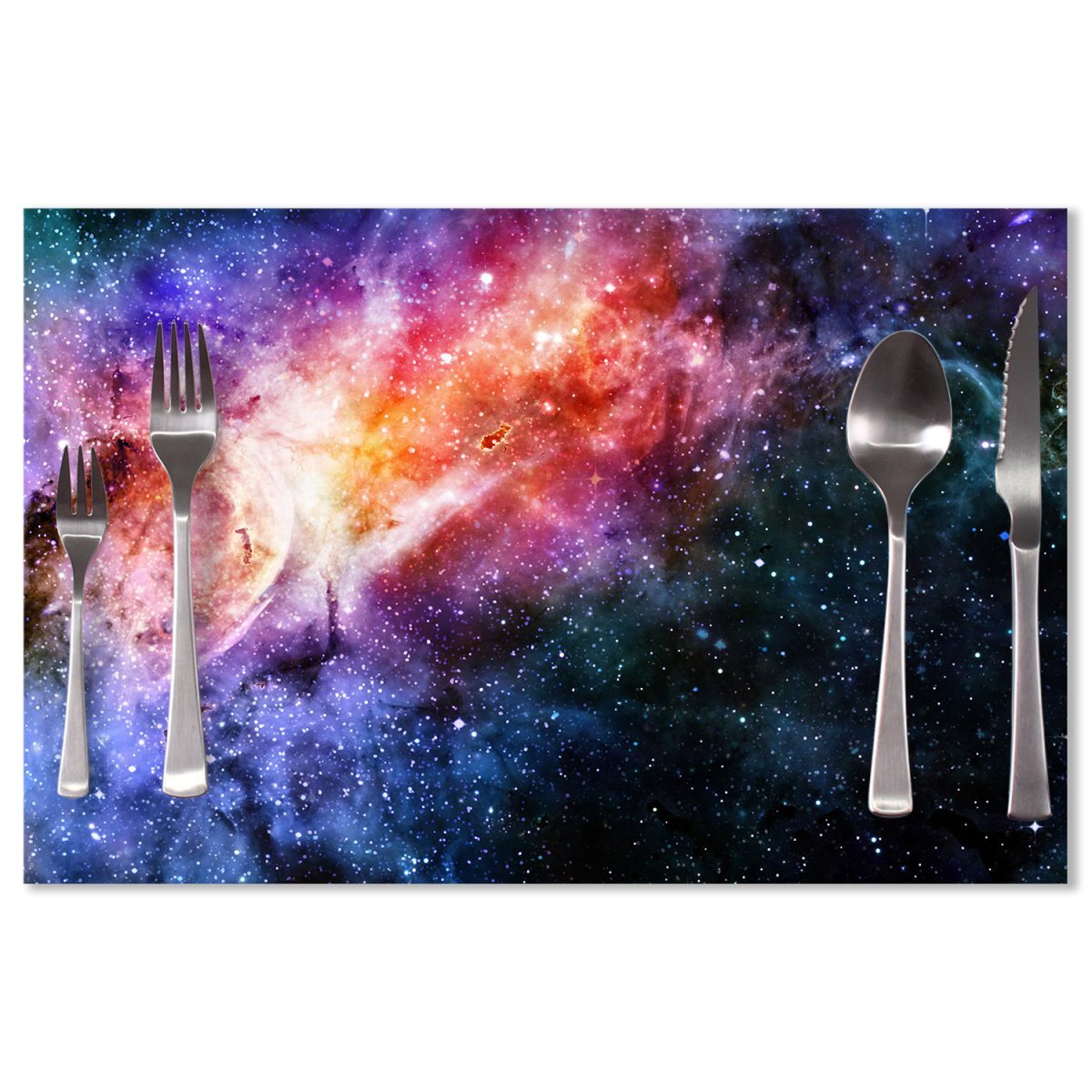 Toto prostírání s působivým motivem vesmírné záře přináší nejen elegantní vzhled, ale i praktické využití. Vyrobené z textilní tkaniny o hustotě 180 g/m², která zajišťuje příjemnou jemnou strukturu a hedvábný lesk, přinese vašemu stolování sofistikovaný nádech. Prostírání má rozměr 40 x 30 cm, což je ideální velikost pro ochranu vašeho stolu a zvýraznění servírovaných pokrmů. Díky kvalitnímu materiálu je navíc snadné na údržbu - lze ho prát v pračce při teplotě do 50 °C a žehlit maximálně na 110 °C.