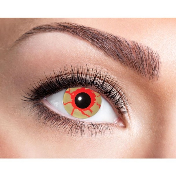 Sada 2 kusů barevných kontaktních čoček. Čočky jsou 3. měsíční, nedioptrické s vysoce krycím efektem zelenožluté barvy s krvavými skvrnami ve vzoru Bloodshot. Využijete je jako doplněk na Halloween, karneval, nebo jakoukoliv tematickou party jako součást kostýmu. Balení: 2 ksDoba nošení: 3 měsíceObchodní balení: Ano Pokyny výrobce k aplikaci: Pokud používáte kontaktní čočky poprvé, navyšujte dobu nošení postupně. První den nenoste čočky déle než 4 hodiny, každý další den můžete prodloužit dobu nošení o 2 hodiny. Čočky nemějte nasazené déle než 10 hodin denně. Čoček se dotýkejte pouze čistýma, suchýma rukama. Když poprvé otevíráte balení, vždy se ujistěte, že jsou čočky neporušené a zcela ponořené do kapaliny. Nepoužívejte, je-li balení porušené nebo čočky vyschly. Je nezbytně nutné kontaktní čočky před prvním použitím ponořit nejméně na 4 hodiny do čerstvého roztoku pro kontaktní čočky. Teprve poté je možné čočky dle následujících instrukcí používat. Následující pokyny přesně dodržujte. Nasazení: - Vyjměte jednu čočku z balení.- Umístěte čočku na špičku pravého ukazováčku a ujistěte se, že je otočená na správnou stranu.- Nadzvedněte levým ukazováčkem horní víčko a zároveň stahujte dolů spodní oční víčko prostředníčkem pravé ruky.- Nyní můžete vložit čočku do oka.- Výše uvedený postup (body 1. až 4.) opakujte i pro nasazení čočky do druhého oka. Vyjmutí: Podívejte se nahoru a zároveň stáhněte dolů spodní víčko. Palcem a ukazováčkem lehce stiskněte k sobě spodní okraj čočky a vytáhněte čočku z oka. Čištění a dezinfekce: Vždy se řiďte pokyny na lahvičce s roztokem na kontaktní čočky. V případě, že si nejste jisti, jestli nejsou čočky poškozené, poraďte se před jejich nasazením se svým očním lékařem. Buďte si, prosím, vědomi, že zdraví očí je rozhodující pro vaše dobré vidění a neriskujte poškození zraku nedbalostí nebo nesprávným používáním čoček.