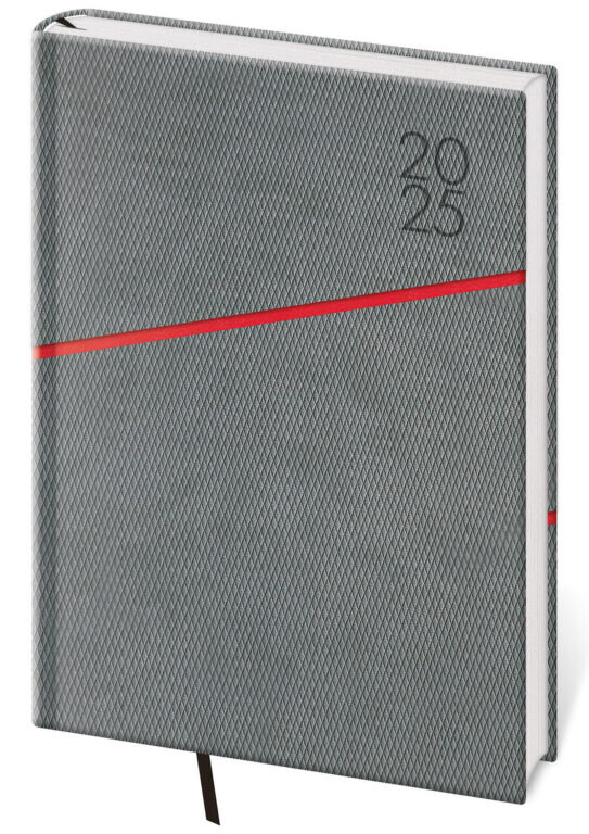Diář 2025 Grife denní A5 šedo/červená číst celé