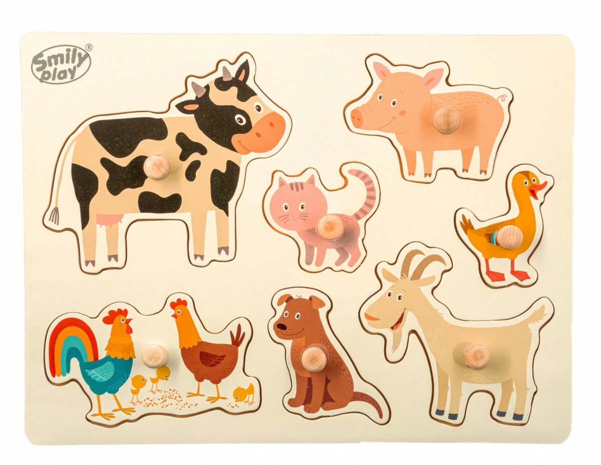 Puzzle można układać w specjalnie wyprofilowanych miejscach na przystosowanej do tego tablicy. Każdy element układanki posiada uchwyt, dzięki któremu dziecku łatwiej będzie układać puzzle. Układanka składa się z siedmiu puzzli i tablicy. Każdy element tablicy jest w innym kształcie i kolorze puzzle prezentują różne rodzaje zwierząt domowych.