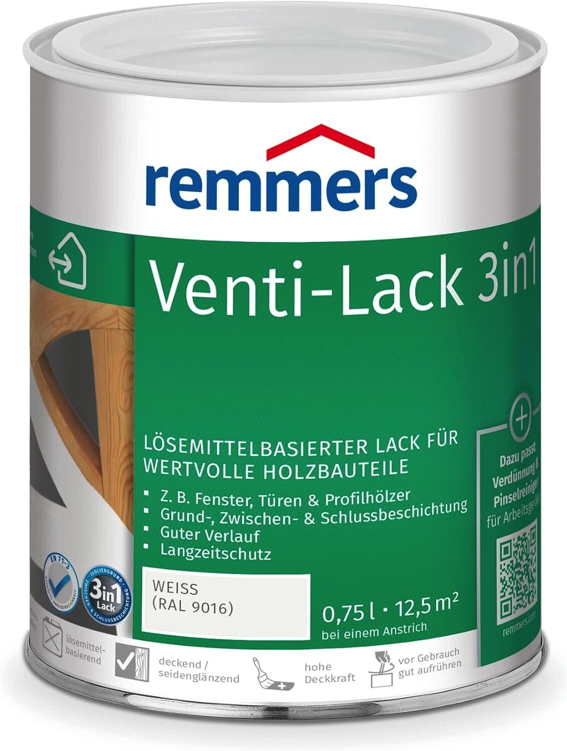 Remmers Venti-Lak 3v1 BÍLÝ RAL 9016 je ideální volbou pro všechny, kdo hledají spolehlivou a efektivní ochranu pro své dřevěné povrchy, ať už v interiéru nebo exteriéru.