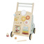 Dřevěné chodítko v jemných barvách rozvíjí nejen hrubou a jemnou motoriku Vašeho dítěte, ale skrývá mnoho dalších zábavných aktivit, díky kterým dítě poznává svět. Barevná ozubená kola, která na sebe dosedají rozvíjí technické myšlení, barevný xylofon působí na sluchové vnímání a díky jednoduché provlékačce, vkládačce posiluje všestranný vývoj dítěte. To vše je doplněné o veselé obrázky.