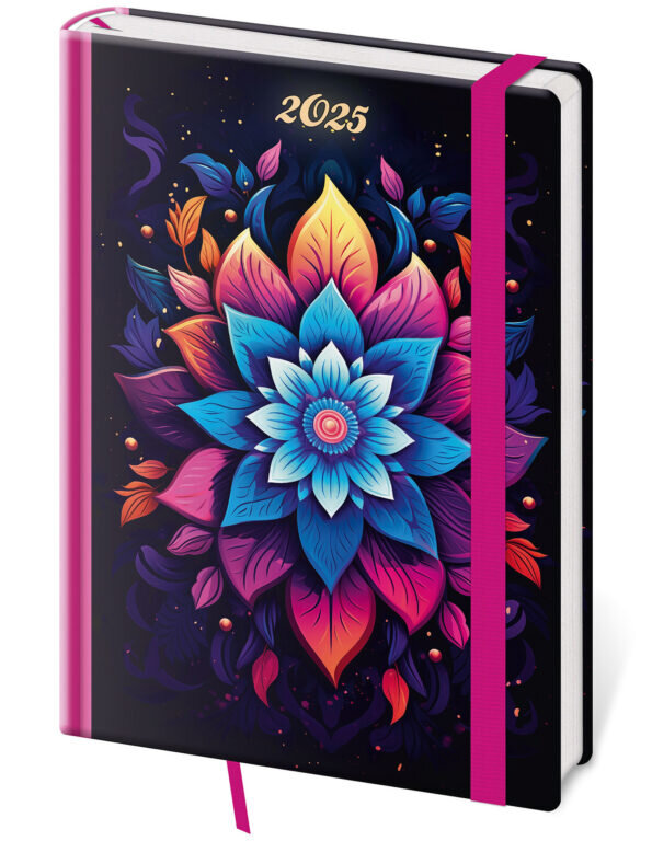 Diář 2025 Vario denní A5 Mandala s gumičkou je ideálním pomocníkem pro každého, kdo chce mít své dny dokonale organizované a zároveň si dopřát chvíle klidu a estetiky.