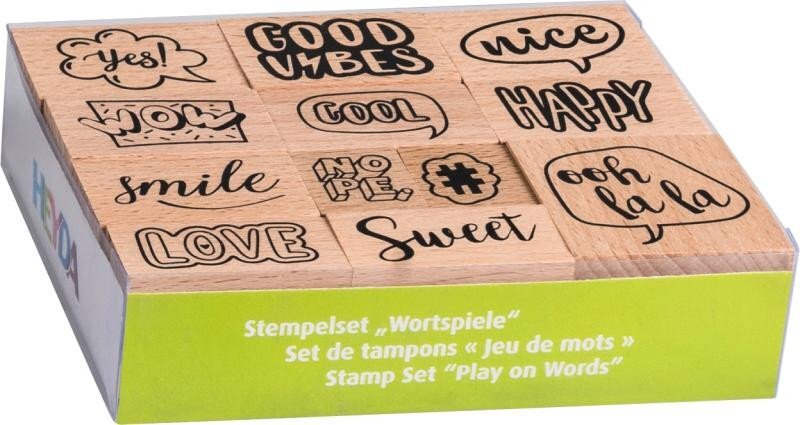 Set obsahuje 12 motivů. Razítka jsou upevněna na dřevěném bloku. Vhodné pro použití i s jakýmkoliv inkoustem, který máte k dispozici. Má hlubokou texturu, mužete použít na papír, textil, polymery i jiné povrchy, je však potřeba vybrat inkoust vhodný na daný povrch. Po použití gumový povrch jemně očistěte vodou nebo čističem na razítka. Osušte a uložte pro nové použití.