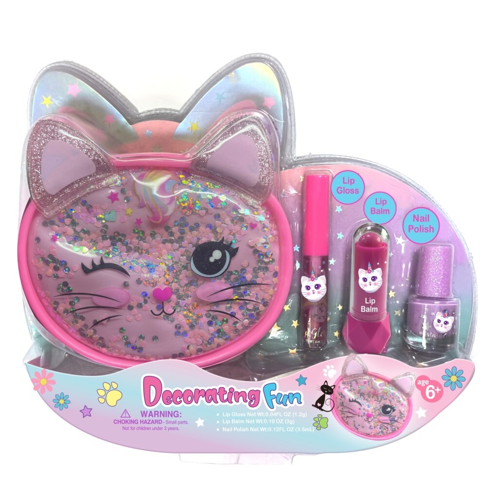 Objevte radost z prvního líčení s naším kouzelným kosmetickým setem! Set s roztomilou taštičkou ve tvaru kočičky je ideálním dárkem pro malé slečny, které chtějí objevovat svět krásy bezpečně a zábavně.