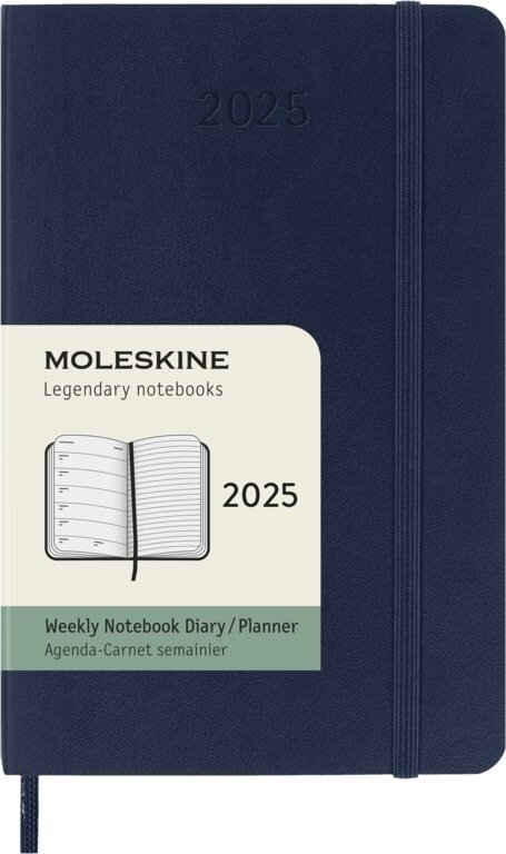 Modrý plánovací zápisník Moleskine pro rok 2025 v kapesní velikosti je ideální volbou pro všechny, kteří chtějí mít svůj čas i poznámky vždy pod kontrolou. Na levé straně každé stránky najdete přehledný rozvrh týdenních dnů, který vám umožní efektivně plánovat své úkoly a události. Pravá strana nabízí linkované stránky pro vaše poznámky, nápady či další důležité záznamy.