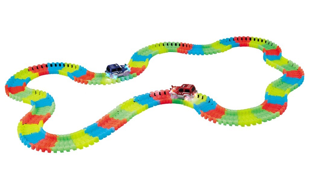 - Svítící závodní dráha: 165 dílků pro tvorbu jedinečných tratí, které září ve tmě.