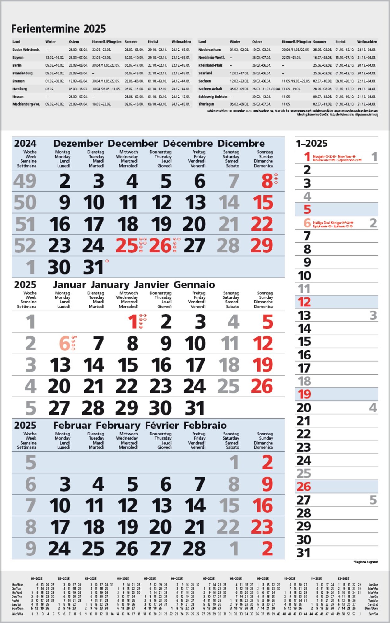 3-Monats-Planer Combi Blau 2025