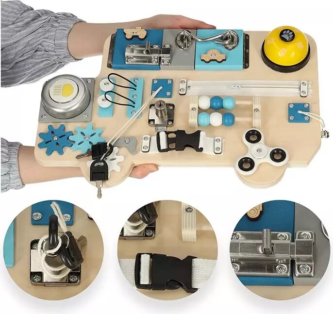 Montessori smyslová manipulační deska Autobus je ideálním nástrojem pro trénování jemné motoriky u dětí. Díky této dřevěné desce si děti zábavnou formou zdokonalí své manuální dovednosti, které jsou klíčové pro jejich další osobní i školní rozvoj.