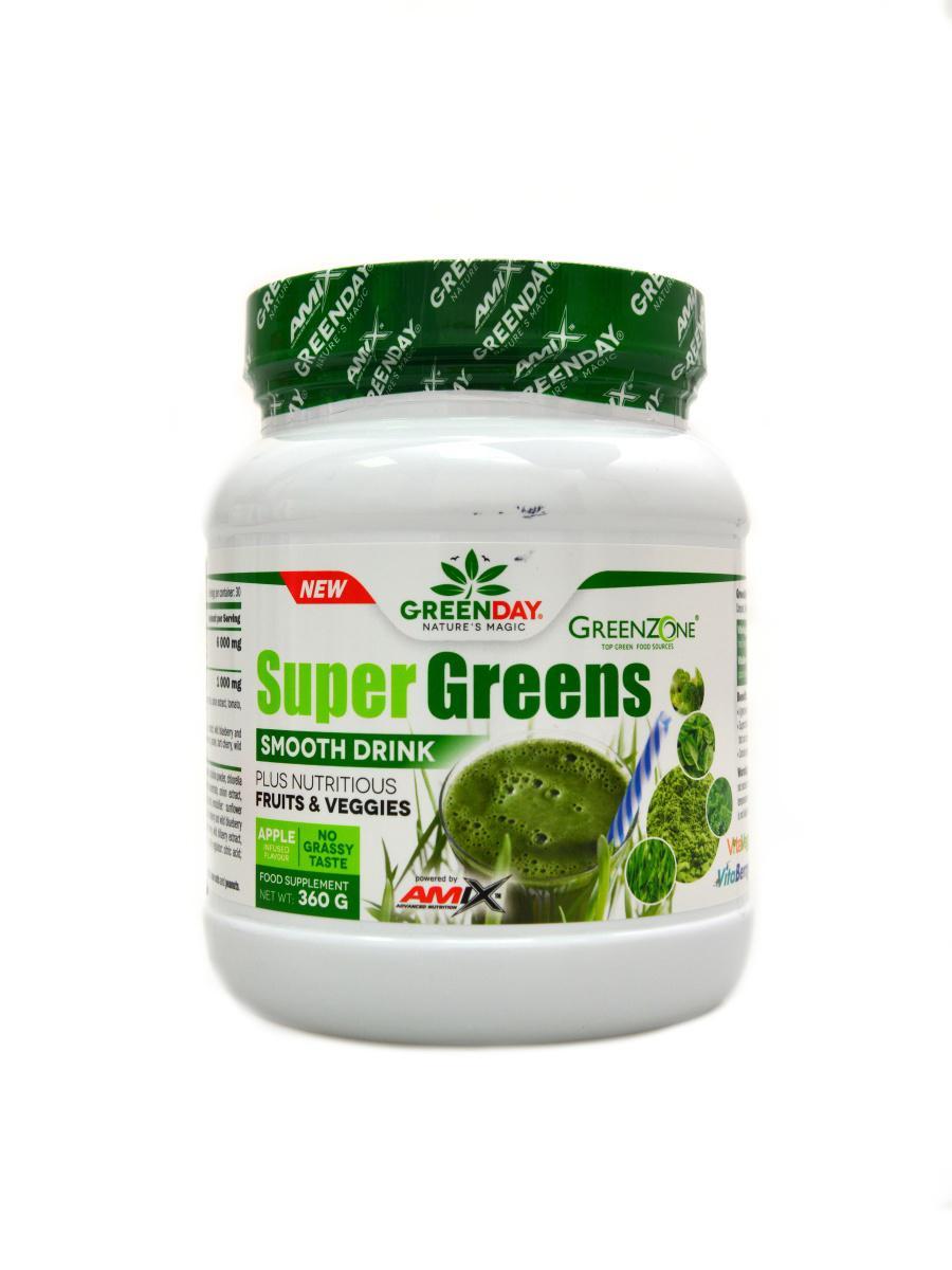 GreenDay® Super Greens Smooth Drink je doplněk stravy pro přípravu chutného zeleného nápoje plného energie a antioxidantů. Obsahuje Greens Komplex, VitaVeggie® and VitaBerry® pro kontrolu tělesné hmotnosti a zdravé trávení.
