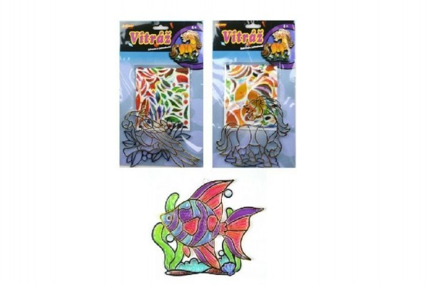 Vitrážový obrázek plast 28x17cm 4 druhy na kartě -1 kus