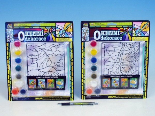 Okenní dekorace 8 barev + štětec asst 4 druhy na kartě