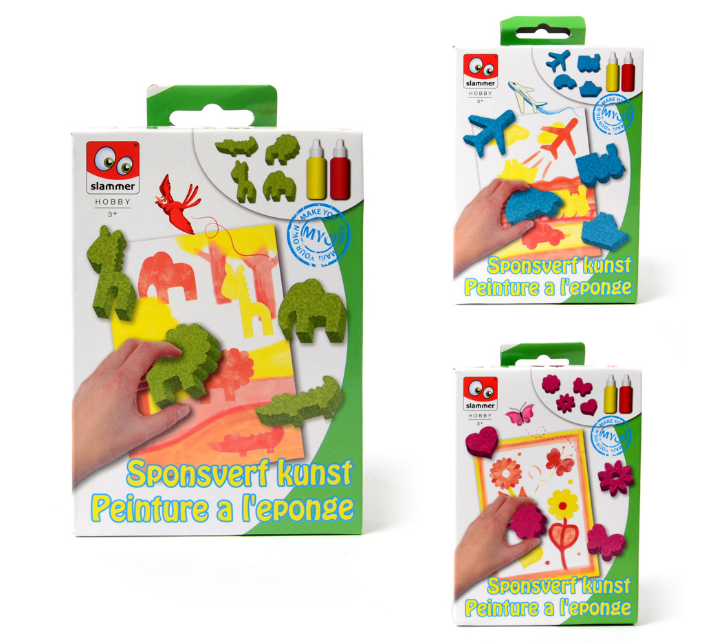 Houbičkové malování - 3 motivy (zvířátka, kytičky, dopravní prostředky) - sada obsahuje 4 různé houbičky + 2 barvy. číst celé