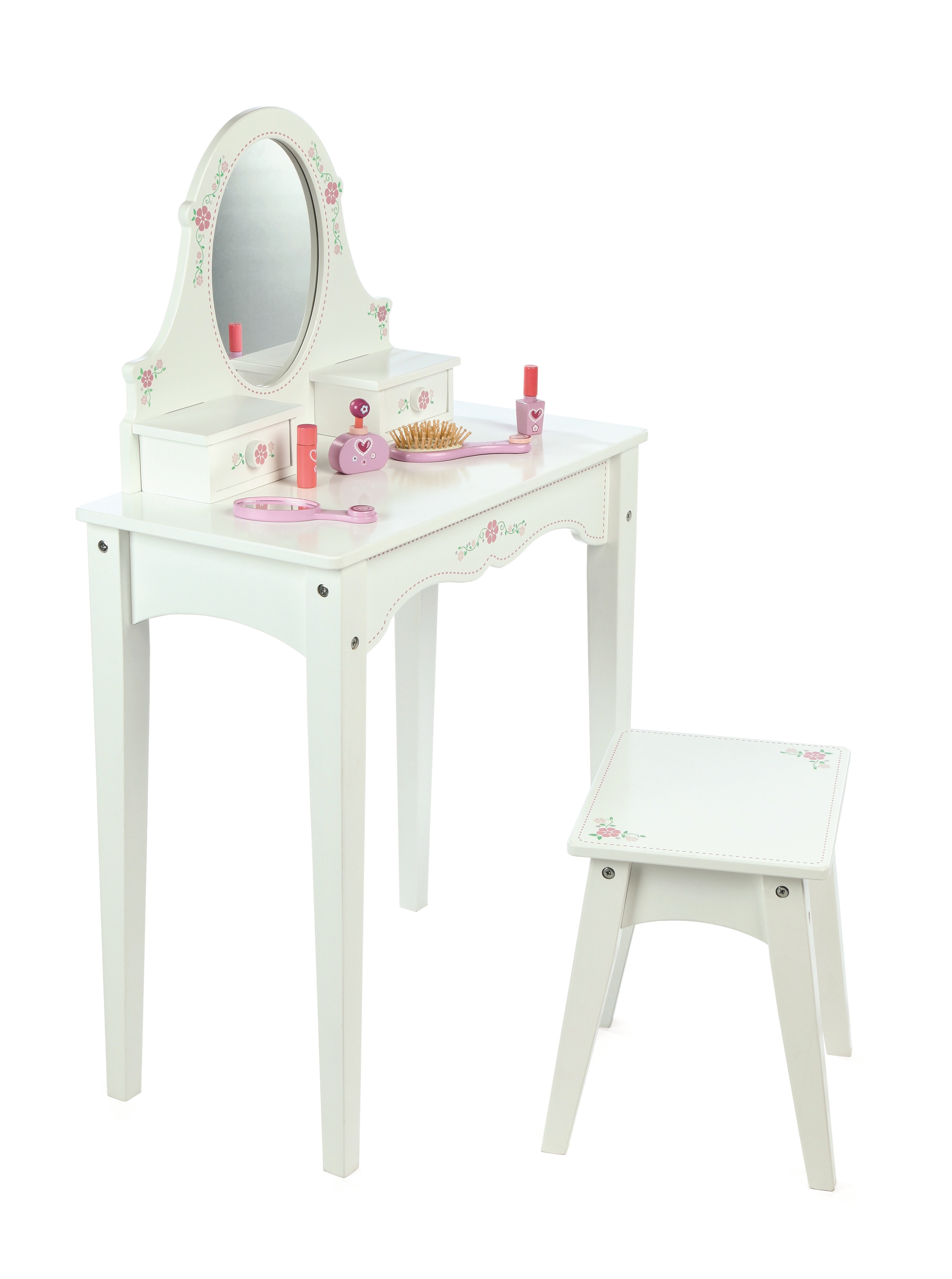 Kosmetický stoleček je perfektním doplňkem každé ložnice či herny. Se svou krásnou květinovou dekorací a vestavěným oválným zrcadlem bude děti inspirovat k hodinám kreativní hry - ať už zkrášlují sebe samé nebo někoho jiného. U stolečku se mohou připravit na svůj den, udělat si účes, prostě si užít mnoho zábavy. Stůl je v balení se stoličkou a dvěma šuplíky, kam si děti mohou uložit své doplňky. Vysoce kvalitní s robustní konstrukcí, tento stoleček toho vydrží mnoho. Doplňky nejsou součástí balení. Po vybalení je nutno složit. Vyrobeno z kvalitních materiálů z odpovědných zdrojů. Odpovídá evropské bezbečnostní normě. Hračky anglické značky TIDLO Timeless Toys jsou, jak název napovídá, nadčasové dřevěné hračky vyráběné společností John Crane již od roku 1984. Všechny hračky, jež vychází z moderních trendů, nabízejí vynikající hodnotu, kvalitu, design a bezpečnost pro děti.