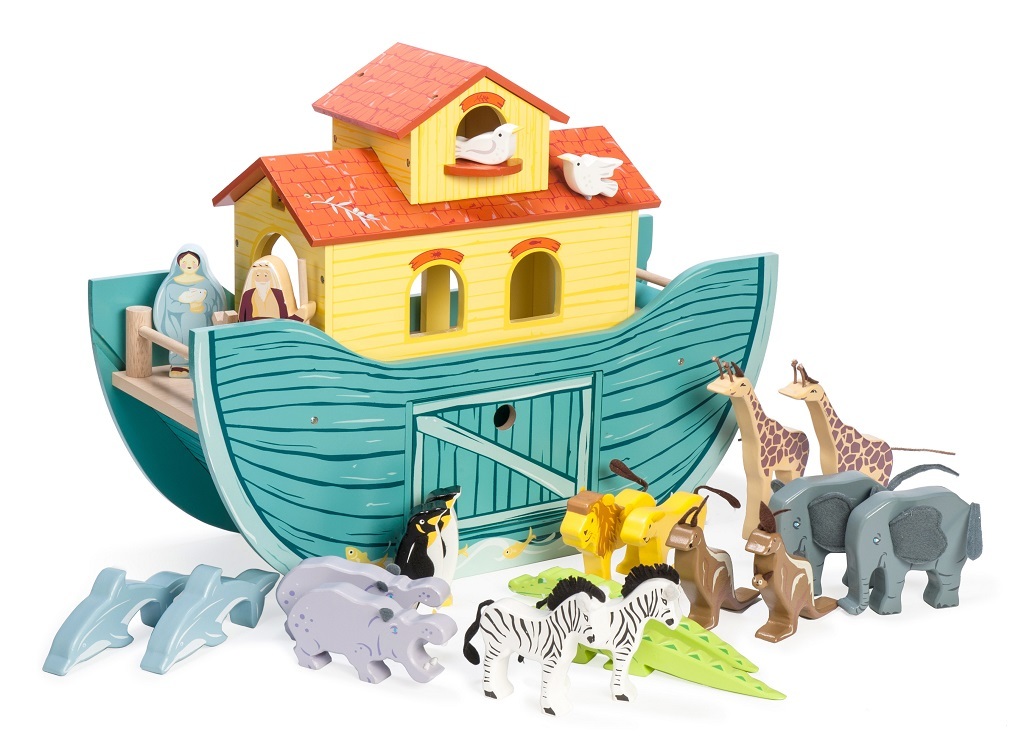 Krásná ručně malovaná Noemova archa s 10 páry zvířátek a postavami Noa a jeho ženy. Archa má ve spodní části trupu otevírací nákladní vrata, aby do archy nastoupily všechna zvířátka včas. Podpalubí a palubu spojuje schodiště. Všechny na palubě chrání jednoduchý otevřený domeček. Britská značka Le Toy Van výrábí tradiční, vysoce kvalitní, prémiové dřevěné hračky v moderním designu. Kvalitu hraček zajišťuje pečlivý výběr přírodních materiálů a vyjímečné detailní zpracování. Le Toy Van hračky jsou ručně malované. Inspirována dětskou představivostí je společnost Le Toy Van hrdá na to, že navrhuje inovativní hračky, které podporují plnohodnotný rozvoj dětí. Společnost Le Toy Van byla založena v roce 1995 v anglickém Surrey, jako rodinná firma. Zakladaleli byli Georges Le Van a jeho syn Steven Le Van, kteři jsou pokračovateli rodinné společnosti s více než 150 letou historií a zkušenostmi v ruční výrobě dřevěných hraček. Během posledních 25 let se společnost Le Toy Van stala důvěryhodným výrobcem dřevěných hraček. Oceněné hračky se nyní prodávají ve více než 50 zemích světa. Všechny hračky splňují nejpřísnější bezpečnostní normy ICTI, ISO 9001, EN-71 a ASTM.