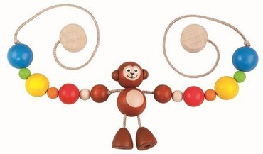 Detoa Závěs na kočárek opice Závěs z dřevěných korálků s opičkou a rolničkou (není vyobrazena) zabaví Vaše dětátko. Šňůrku lze připevnit na kočárek, vajíčko nebo lehátko. Šňůrka musí být mimo dosah dítěte. Jakmile na ni již dítě dosáhne, musí být odstraněna. Produkt splňuje veškeré bezpečnostní předpisy. Výrobek je testován nezávislou laboratoří. Technologickému procesu a kompletaci je věnována zvlášť vysoká pozornost, která zaručuje stálou a vysokou kvalitu výrobku. Výrobek je připevněn na papírové kartě