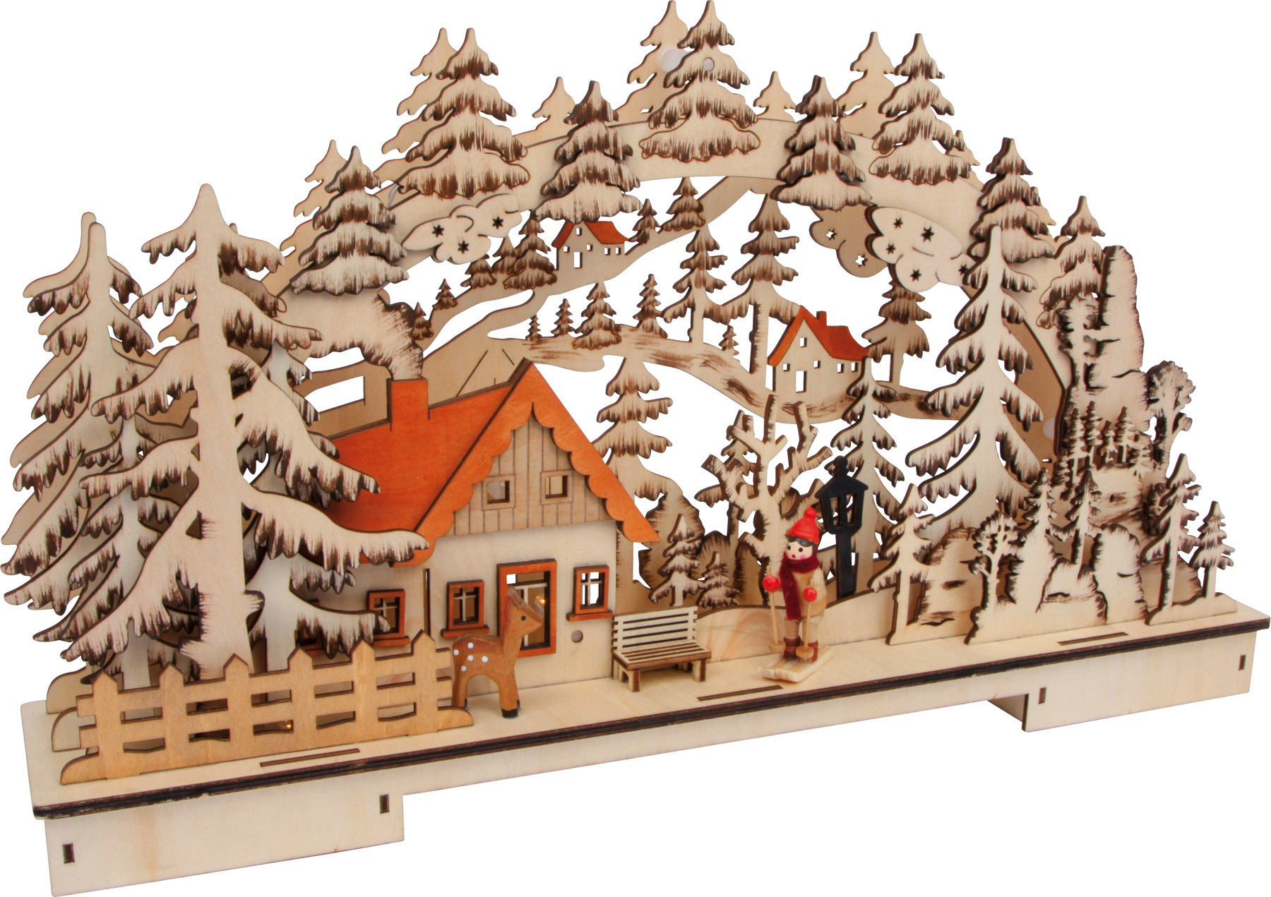 Vánoční svítící dekorace - Zimní krajina Dřevěná dekorace s motivem kouzelné zimní krajiny, vykouzlí příjemnou vánoční atmosféru.