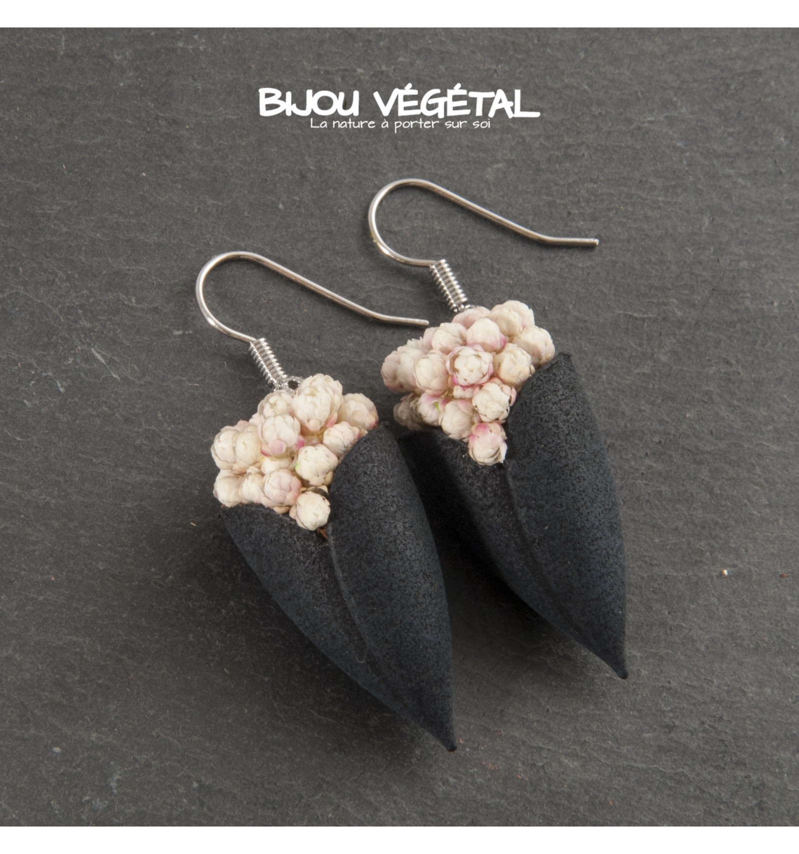Živé šperky - Náušnice Tulipán černé s trvalými bílými kvšty Nádherný módní doplněk ve výrazné barvě v kombinaci s trvalými bílými květy vytváří neobyčejný elegantní živý šperk. Živé šperky jsou stabilizovány patentovanou technologií a nepotřebují prakticky žádnou údržbu. Živé šperky sou baleny v krabičce, součástí balení je náhradní trvalá rostlina. Živé šperky jsou vyrobeny ručně ve Francii. Výrobce garantuje neomezenou životnost, při vhodném používání. Živé šperky nesmí být vystaveny velkým teplotním změnám a přímému proudu vody (při koupání, mytí nádobí apod.) Živé šperky byly poprvé představeny na mezinárodním veletrhu klenotů Bijorhca v Paříži roku 2015. Vytvořily je designové návrhářky a dlouholeté kamarádky Maryse a Manuella pro společnost Radis et Capucine. Živé šperky umožňují stálé propojení s přírodou a přinášejí ji doslova na dosah ruky. Francouzská značka Radis et Capucine