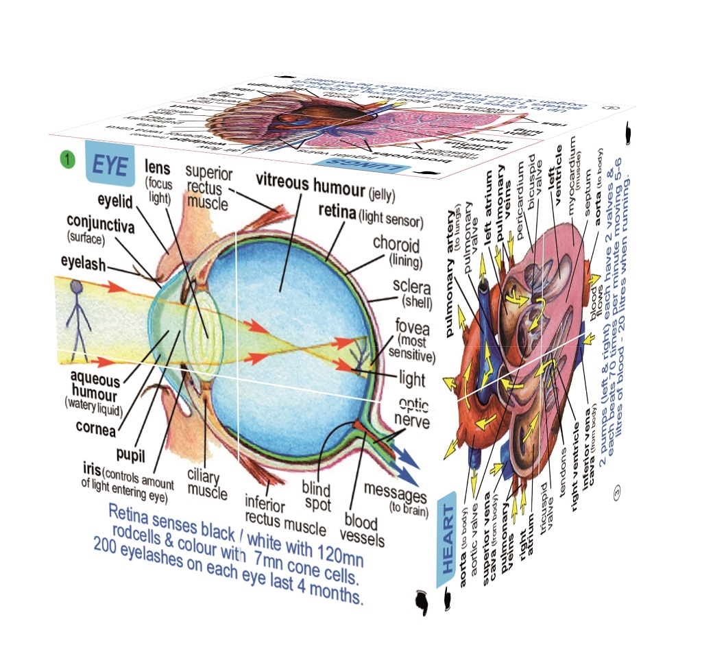 Didaktická kostka se skládá ve všech směrech a v mnoha kombinacích. Popisky na kostce jsou v angličtině. V každé kombinaci složení najdou děti užitečné informace k orgánům a jednotlivým soustavám lidského těla. Skvělé pro použití ve školách, doma i na cestách.