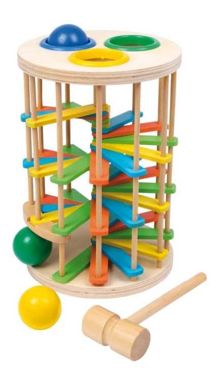 - Plastové kroužky pro snadné zatloukání a pád kuliček po barevných schodech.