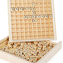 Hra je vyrobena ze 100% certifikovaného dřeva, což zaručuje její dlouhou životnost a příjemný přírodní vzhled. Herní deska je vybavena připravenými okénky, do kterých děti snadno vkládají písmenkové dílky, které díky tomu pevně drží na místě - hra tak zůstává přehledná a snadno ovladatelná i během cesty nebo rodinných setkání. Díky praktickému dřevěnému boxu můžete všechny dílky po skončení hry bezpečně uložit na jedno místo.