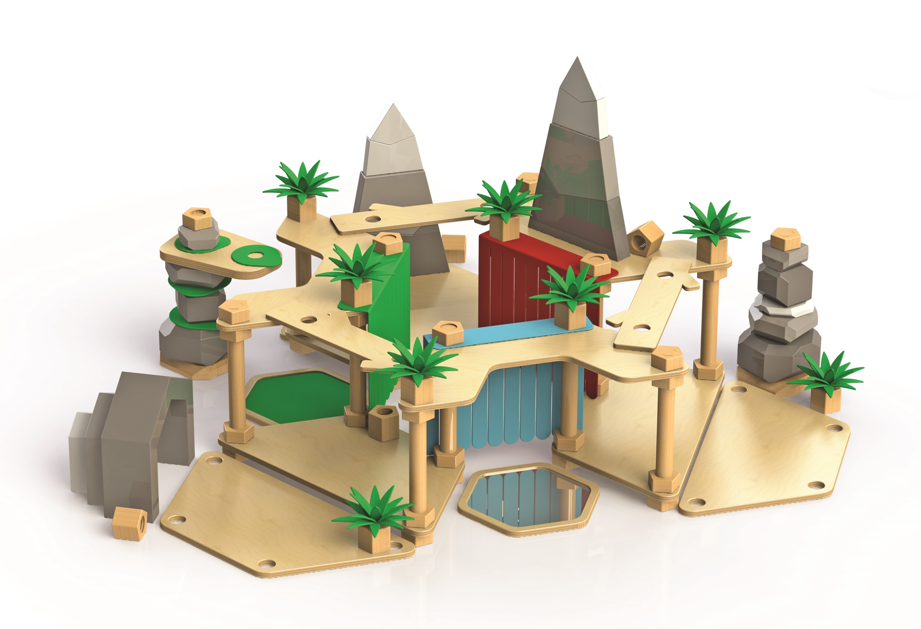 Vytvořte a postavte si kus své vlastní země. Tento hrací set má nekonečno možností. Kreativní děti mohou vytvořit zemi pro dinosaury, džungli, město, farmu nebo cokoliv jiného, dle vlastní inspirace. Tento 115 dílný set obsahuje platformu, dřevěné tyče a matice, balvany, rostliny/stromy, skládáné hory, vnořené klenby, plstěné vodopády, liány, lávu a více! Můžete dokoupit zvířata, auta nebo figurky lidí a set se rázem dostane na jinou úroveň. Set je skvělý pro skupinové hraní, podporuje kreativitu a představivost. Vyvíjí koordinaci ruka-oko a jemnou motoriku. Obsahuje 115 dílků. Vyrobeno z kvalitních materiálů z odpovědných zdrojů. Odpovídá evropské bezpečnostní normě. Hračky anglické značky TIDLO Timeless Toys jsou, jak název napovídá, nadčasové dřevěné hračky vyráběné společností John Crane již od roku 1984. Všechny hračky, jež vychází z moderních trendů, nabízejí vynikající hodnotu, kvalitu, design a bezpečnost pro děti.