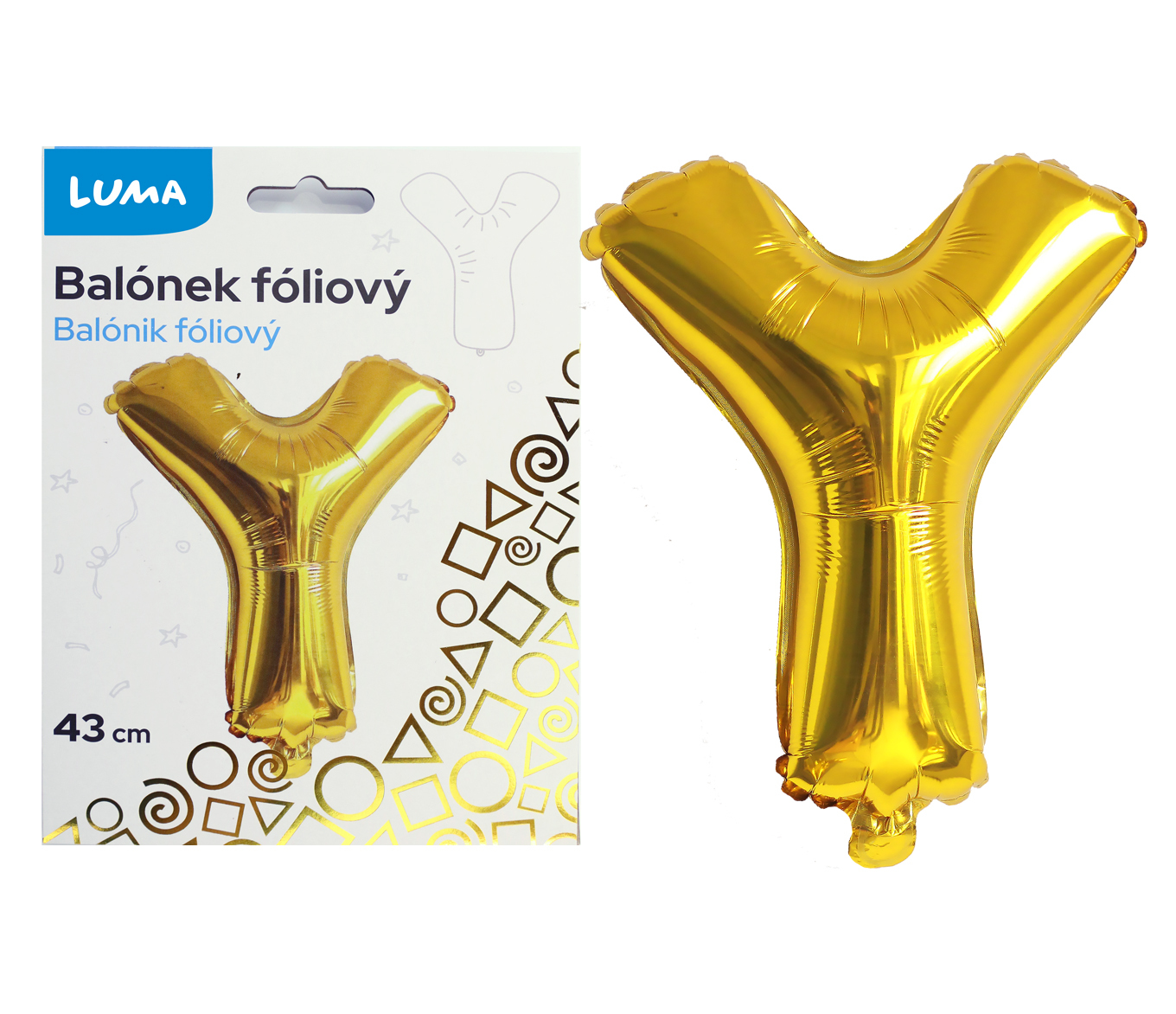 Balónek foliový \"Y\" ZLATÝ LUMA
