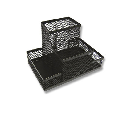 Univerzální kancelářský stojánek pro uložení psacích potřeb, nůžek, sponek a jiných potřeb, který svým provedením doplňuje kancelářskou řadu kovových stojánků dle naší nabídky. Vhodný do kanceláří jako elegantní doplněk na stůl.Barva: černáRozměr: 160 x 80 x 105mm číst celé