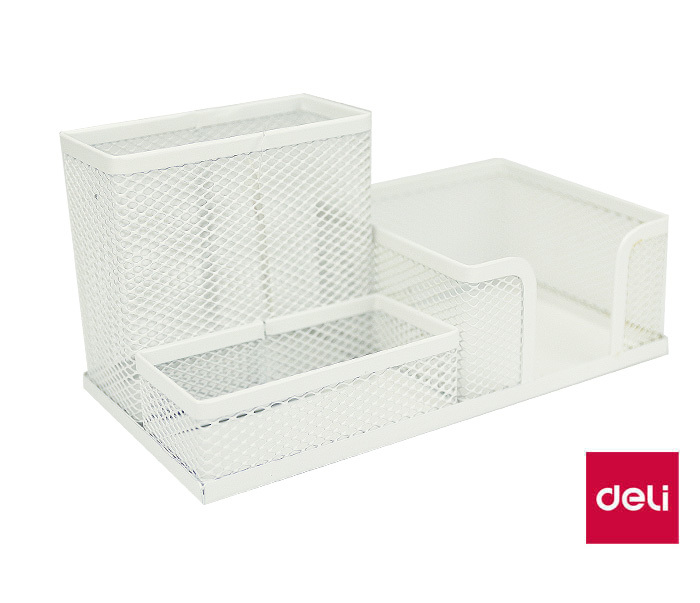 - univerzální kancelářský stojánek pro uložení psacích potřeb, nůžek, sponek a bločků- vhodný do kanceláří jako elegantní doplněk na stůl- barva bílá- rozměr 200 x 100 x 100mm