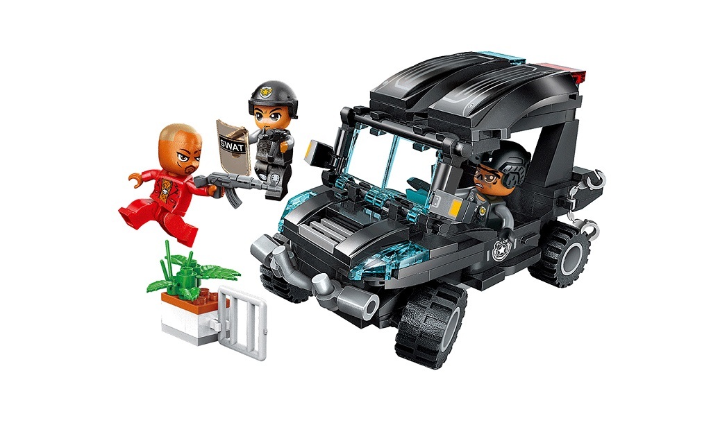 Qman Police Battle Force 1926-2 Vůz Patrola pod palbou Stavebnice je kompatibilní s Lego, Sluban a dalšími stavebnicemi tohoto typu.