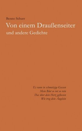 Eine bemerkenswerte Neuerscheinung in der Lyrik sind die Gedichte von Benno Schurr, die er unter dem Titel Von einem Draußenseiter - und andere Gedichte in einem umfangreichen Band erstmals vorstellt.
