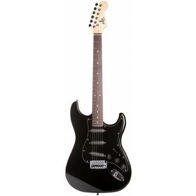 Elektrická kytara typu STČerná barva pickguarduČerná barva snímačůTyp snímačů 3× singlePalisandrový hmatníkVykládání krku perleťovými tečkamiLadící mechanika Die-cast odlitá a olejováHardware nástroje je chromovaný22 pražcůVysoce lesklá povrchová úpravaČerná barva těla číst celé