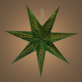 Hvězda vánoční sedmicípáMateriál: Směs papíru a bavlnySametový povrchBarva zelená10LEDBarva světla: teplá bíláNapájení: 3xAAČasovač: 6/18 hPrůměr hvězdy: 60cmBaterie nejsou součástí balení číst celé
