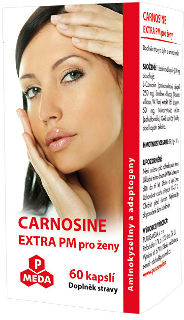 Carnosine Extra PM pro ženy je doplněk stravy, který slouží jako zdroj přírodních sterolů a terpenoidů a fyziologicky důležitého neuropeptidu histidinu a alaninu (L-Carnosine). Neodstatek těchto látek může být jednou z příčin nepřirozeného stárnutí a hormonální nerovnováhy. Přípravek je určen pro ty, kdo usilují o mladistvý a štíhlý vzhled, normální fyzickou a sexuální výkonnost.