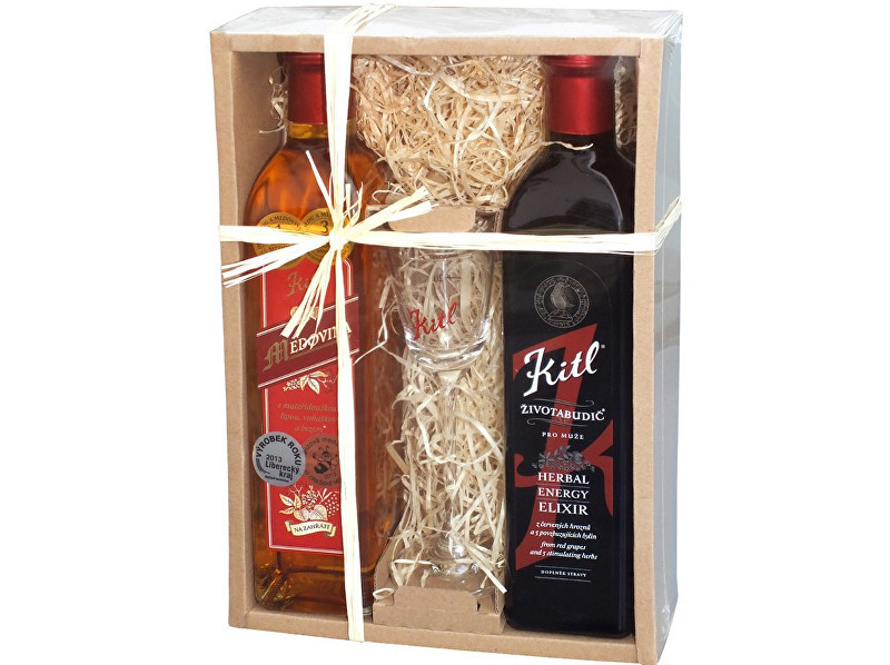 Kitl Dárkový baliček pro muže (životabudič pro muže, medovina+sklenička)